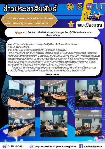 สพอ.เชียงแสน ดำเนินโครงการประชุมเชิงปฏิบัติการจัดทำแผนพัฒนาตำบล