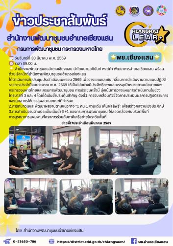 พช.อำเภอเชียงแสน ประชุมทีมงานสพอ.ประจำเดือน เมษายน 2569